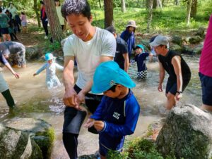 また、食育も盛んに取り入れており、畑や田んぼで野菜やお米を育てて、自分たちで調理をしておいしく食べることを大切にし、「食を営む力」の基礎を培ってほしいと願っています。