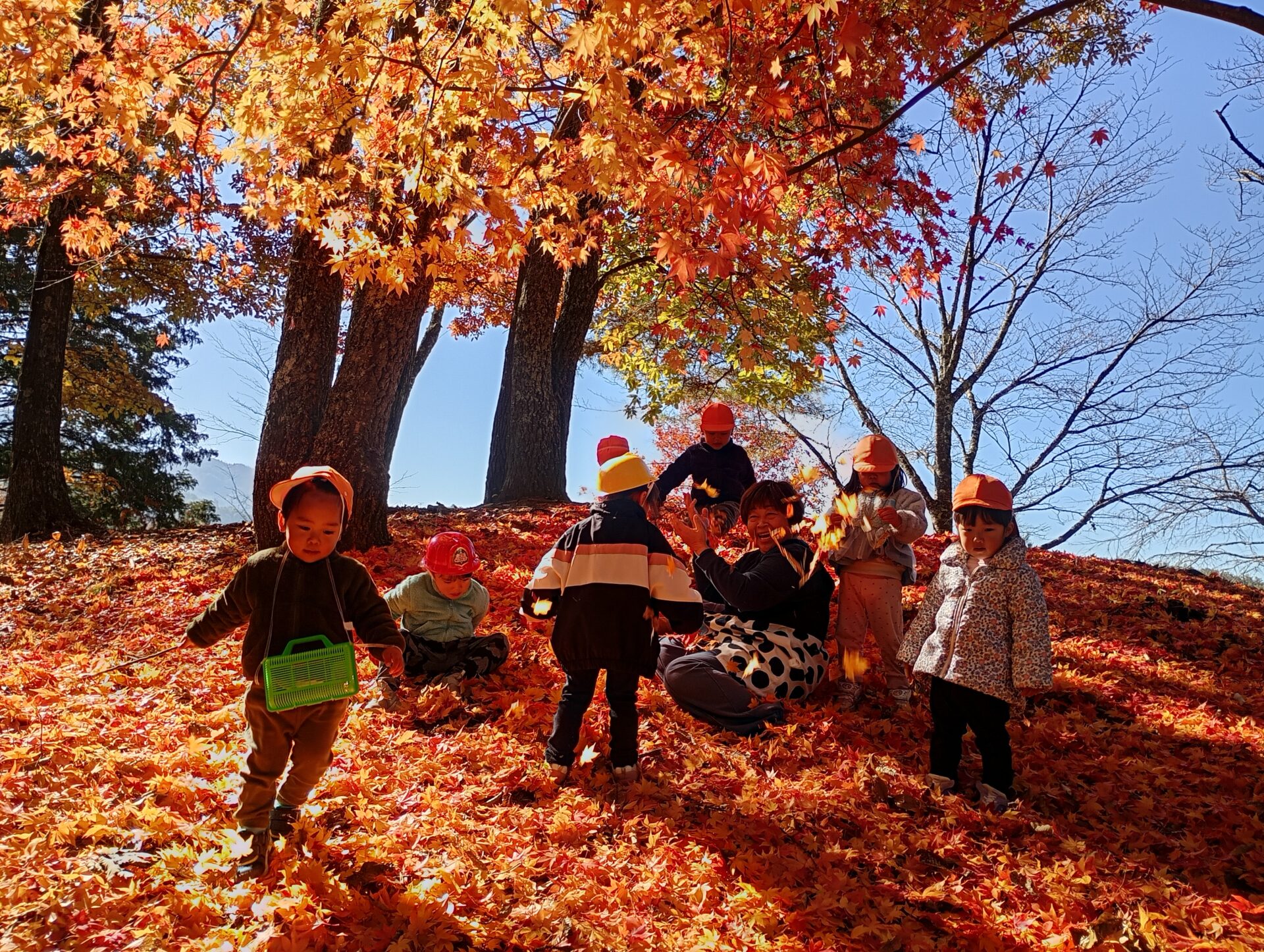 身近に田畑や山などの自然が豊富にあり、恵まれた豊かな自然と触れ合い、地域の人たちと関わりながら地域の良さを学び、「感性豊か」で「心身ともにたくましい」子どもを育てることを保育目標にしています。