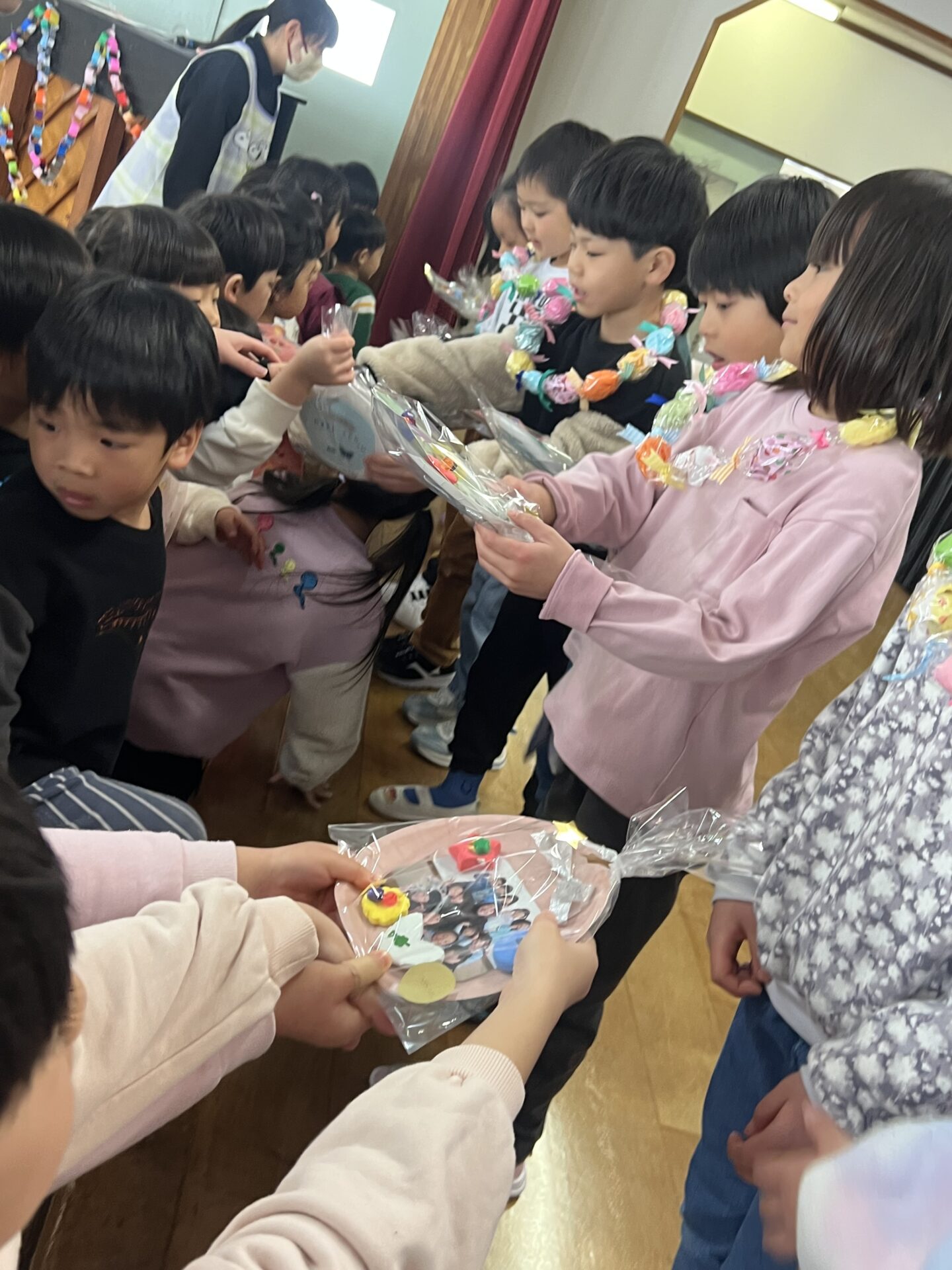 各クラスごと準備をしてきたキャンディーの首飾りや写真プレートを感謝の気持ちを込めて贈りました。