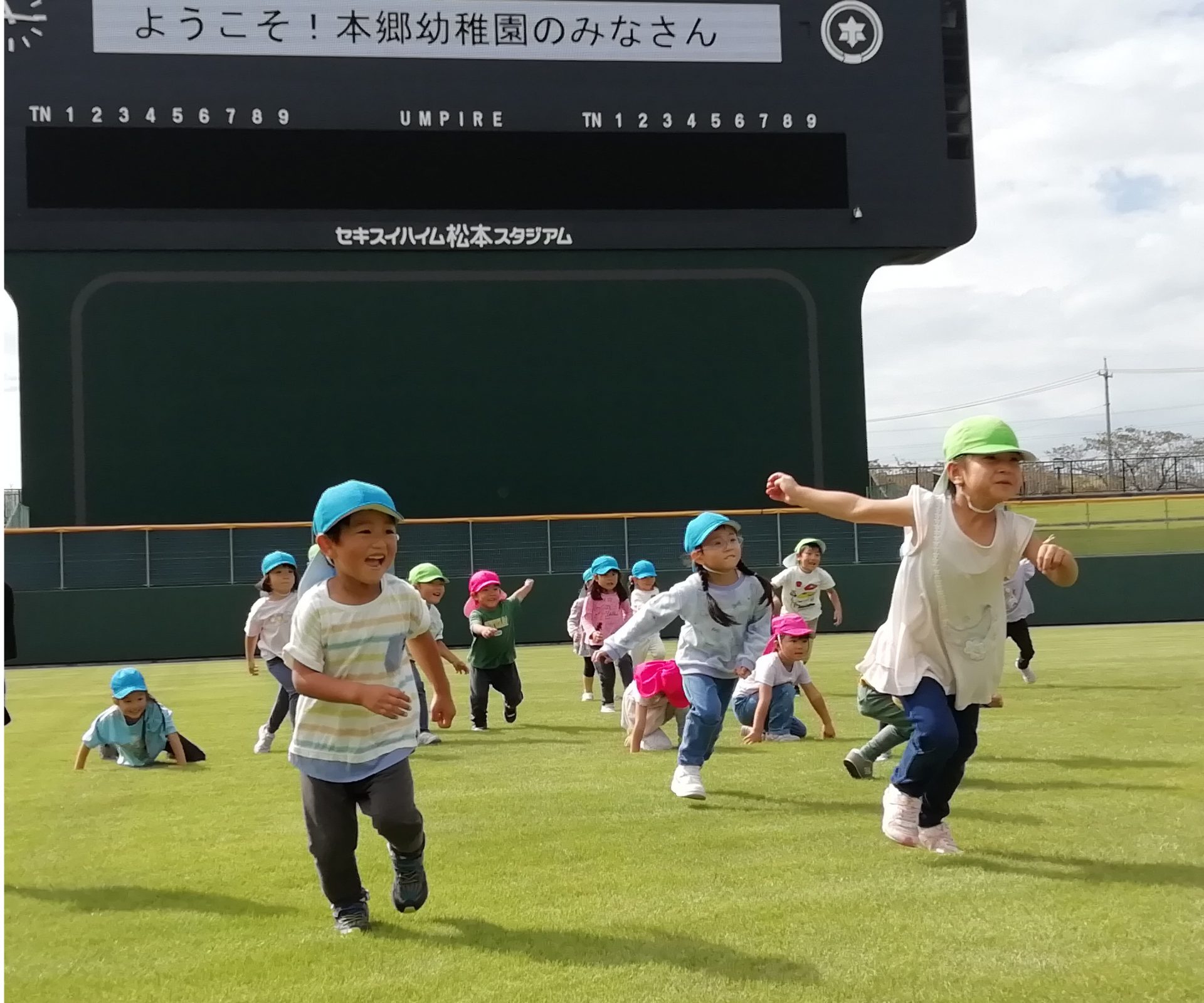 地域の野球場にてだるまさんがころんだ(異年齢)