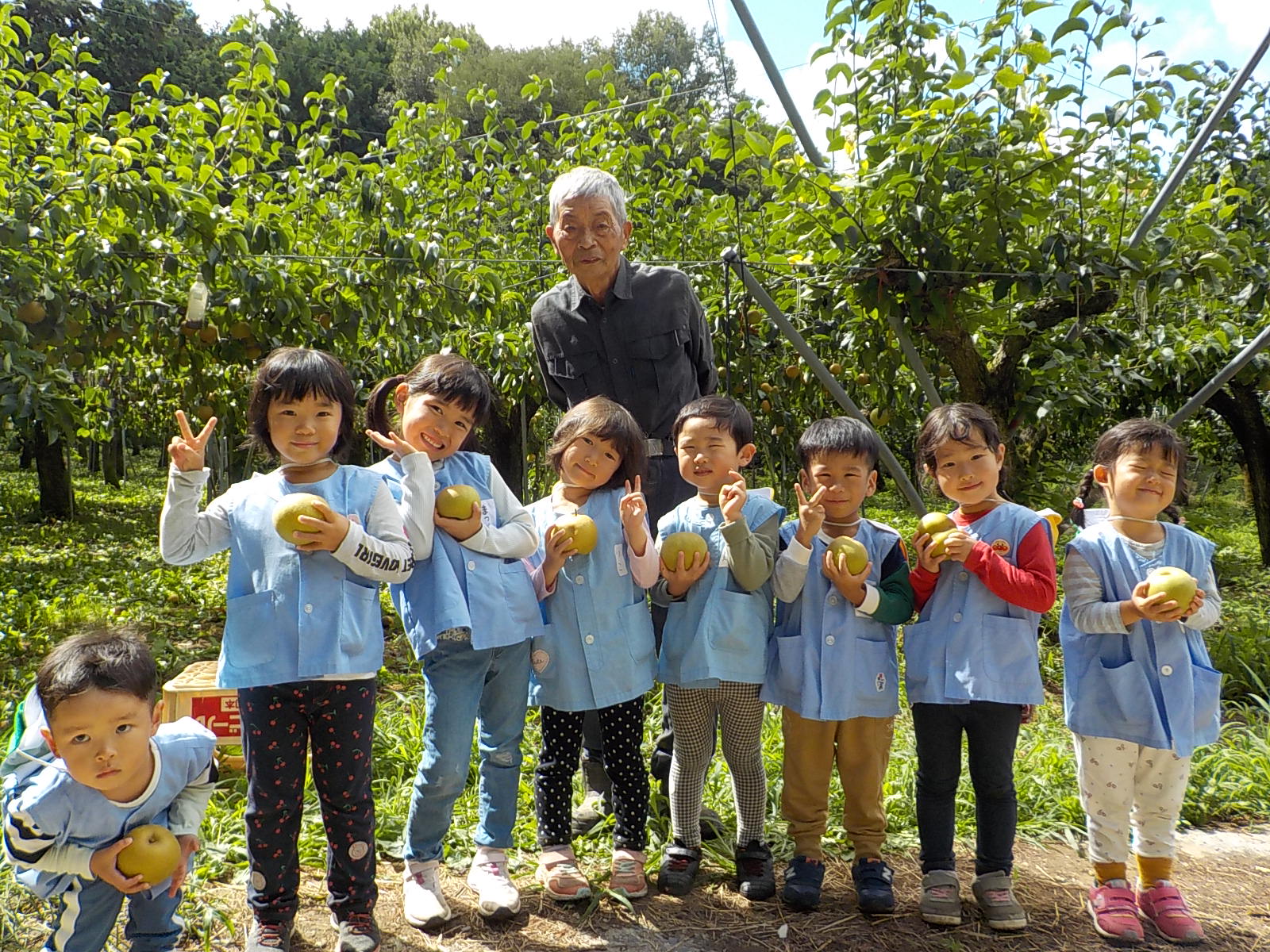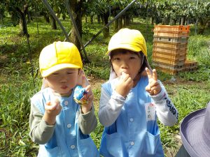 1 小規模園の特徴を活かして、3学年一緒の異年齢保育を行っています。その中で、年上の子は小さい子へのいたわりや思いやりの心が育ち、年下の子は年上の子の生活の仕方を見て覚えたり、目標やあこがれにしたりといった気持ちが育っています。