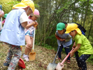 4 自分たちで苗を植え、育てて、収穫をして、食するまでの活動の中で、食べ物に対する興味や生長に関心が持てるようにしています。