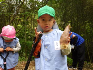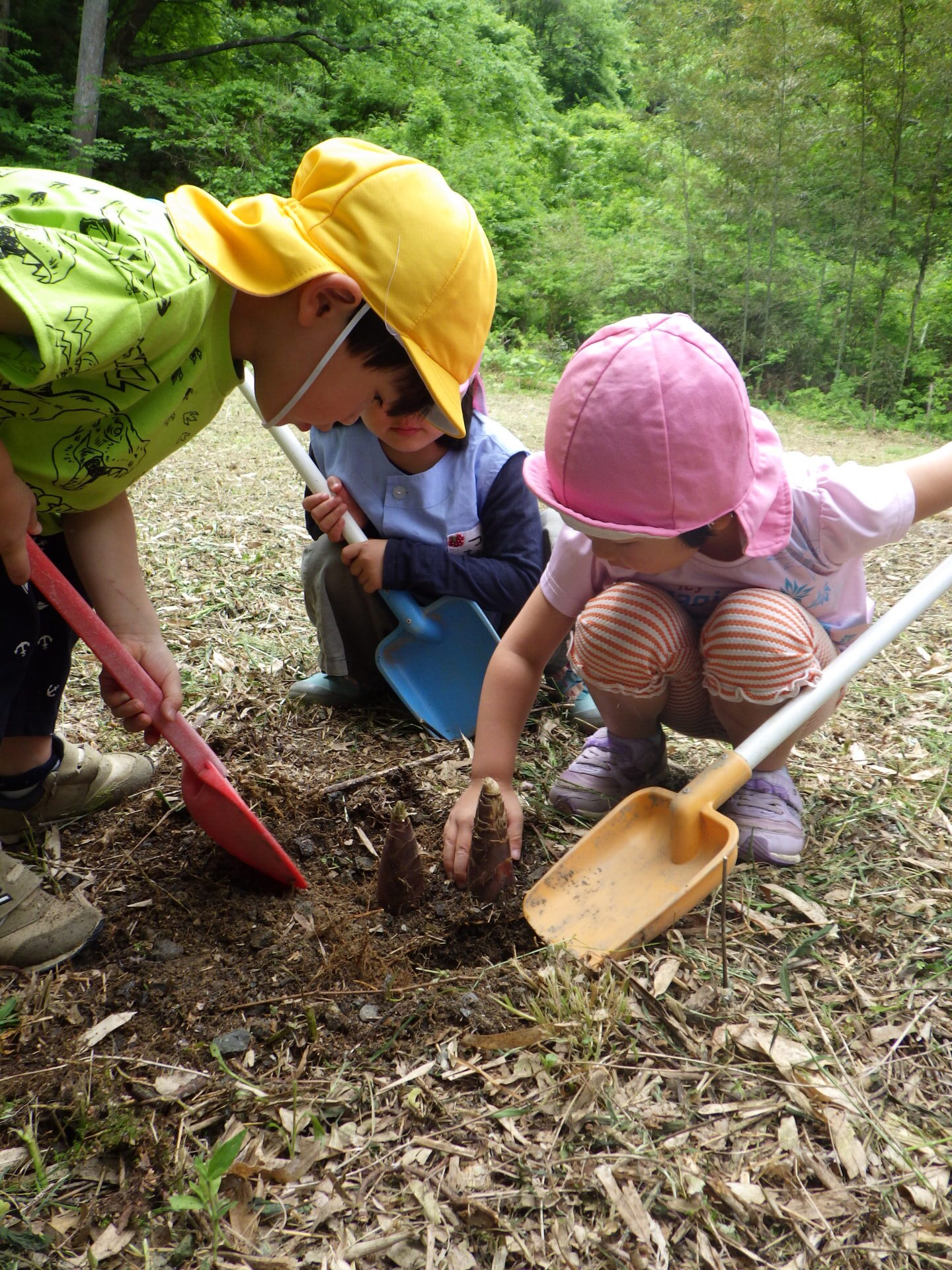 2 身近にある里山、川での遊びや地域を知る散歩等を通して、自分たちが暮らしている地域の自然環境の良さを感じ、その中で遊び、豊かで丈夫な心と体作りをしています。