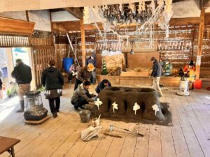 岡井さんは粘土を練って、かまどを作っていました!