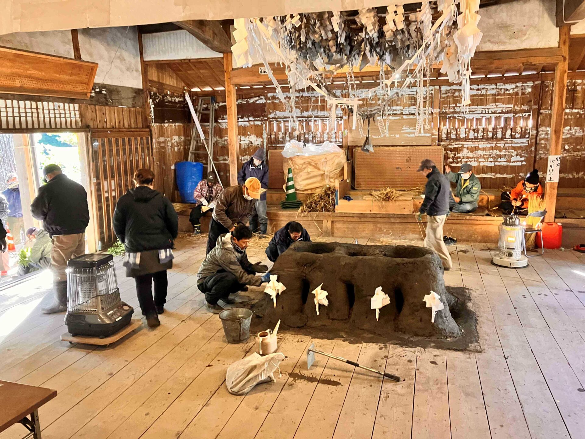 神社にはすでに地域の皆様が集まり、お祭りの準備が着々と進められていました。