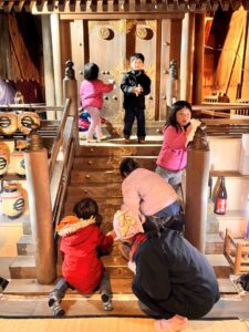 ○霜月祭りには社殿のお掃除をし、また祭りに参加するなど、地域の子どもとしての役割を担う。