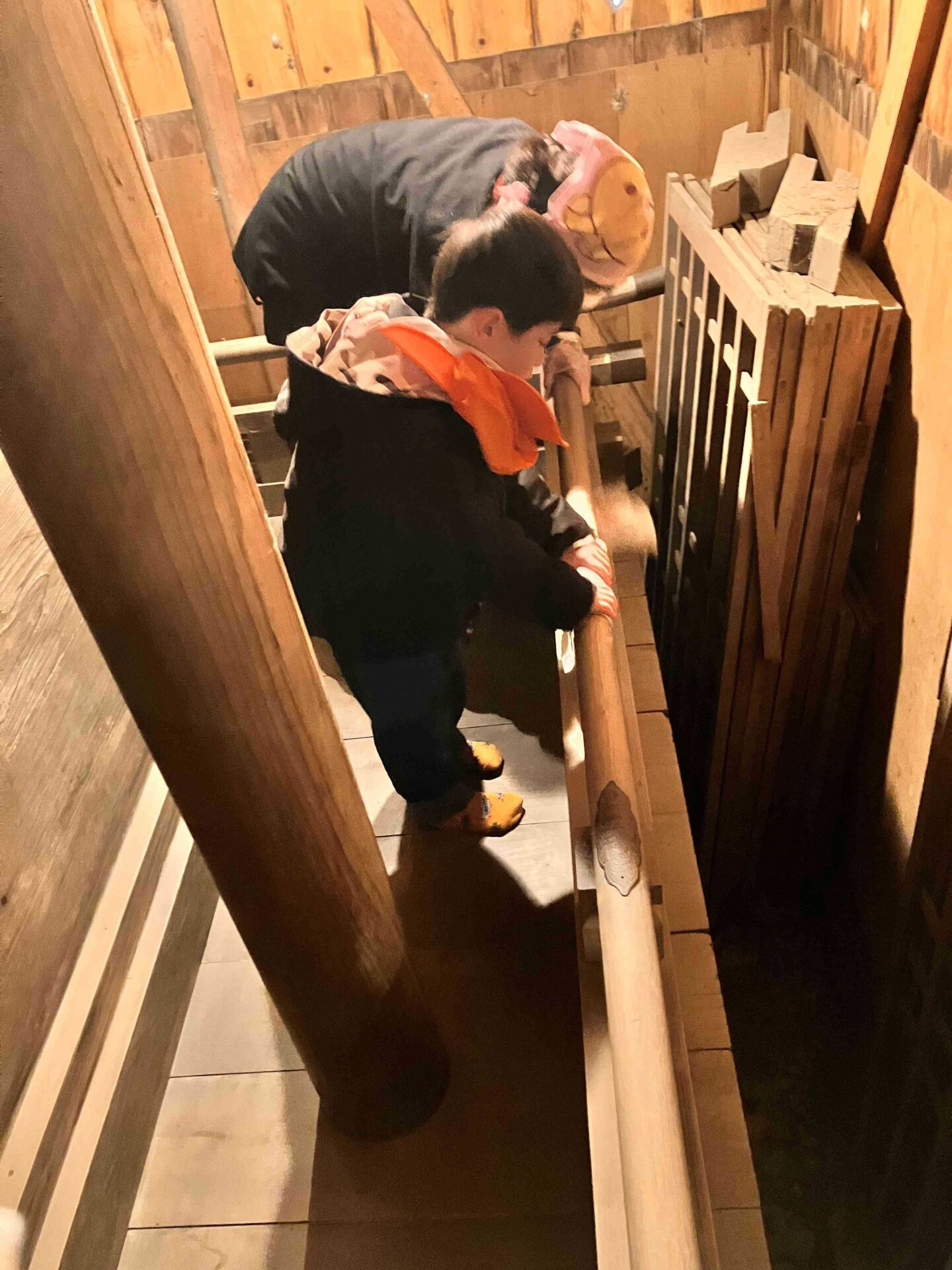 まずは階段を拭きながら少しずつに上にあがっていきます。