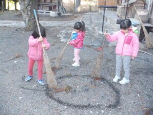この日は上町正八幡宮にばなな🍌・りんご🍎・すいか🍉組の子ども達で霜月祭のためのお掃除に行ってきました。