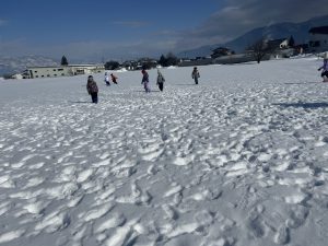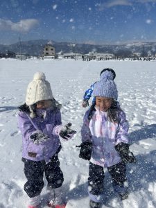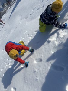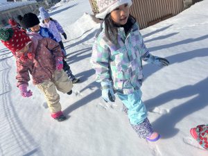 遊んでいると、雪質の違いに気づいた子どもたち。