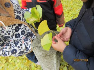 この時期ならではのどろんこあそび。未満児クラスで初めての子もいたので、汚れや砂の感触を嫌がる子もいましたが、以上児さんも一緒なので「いっしょにあそぼう」と誘ってもらって、あとをついて砂の上を歩く姿がありました。「足埋めて」という年中児さんの足に砂をかける手伝いをしたり、大きい子の真似をして水を自分で運んだりもしていました。しぜんと異年齢交流の場にもなっていたのが見ていて嬉しい姿でした。泥が平気な子も苦手な子もそれぞれの楽しかった経験がまた来年に繋がればいいなと思います。