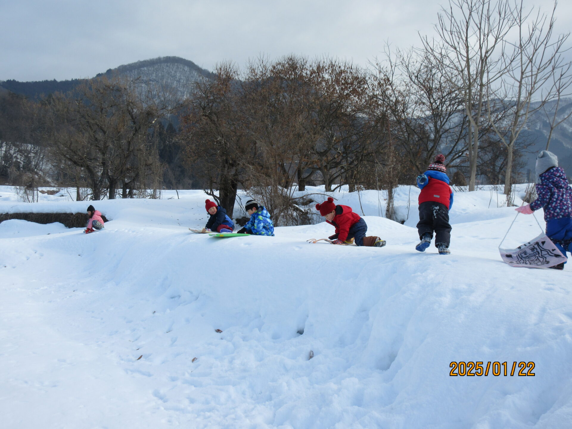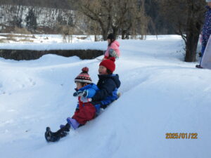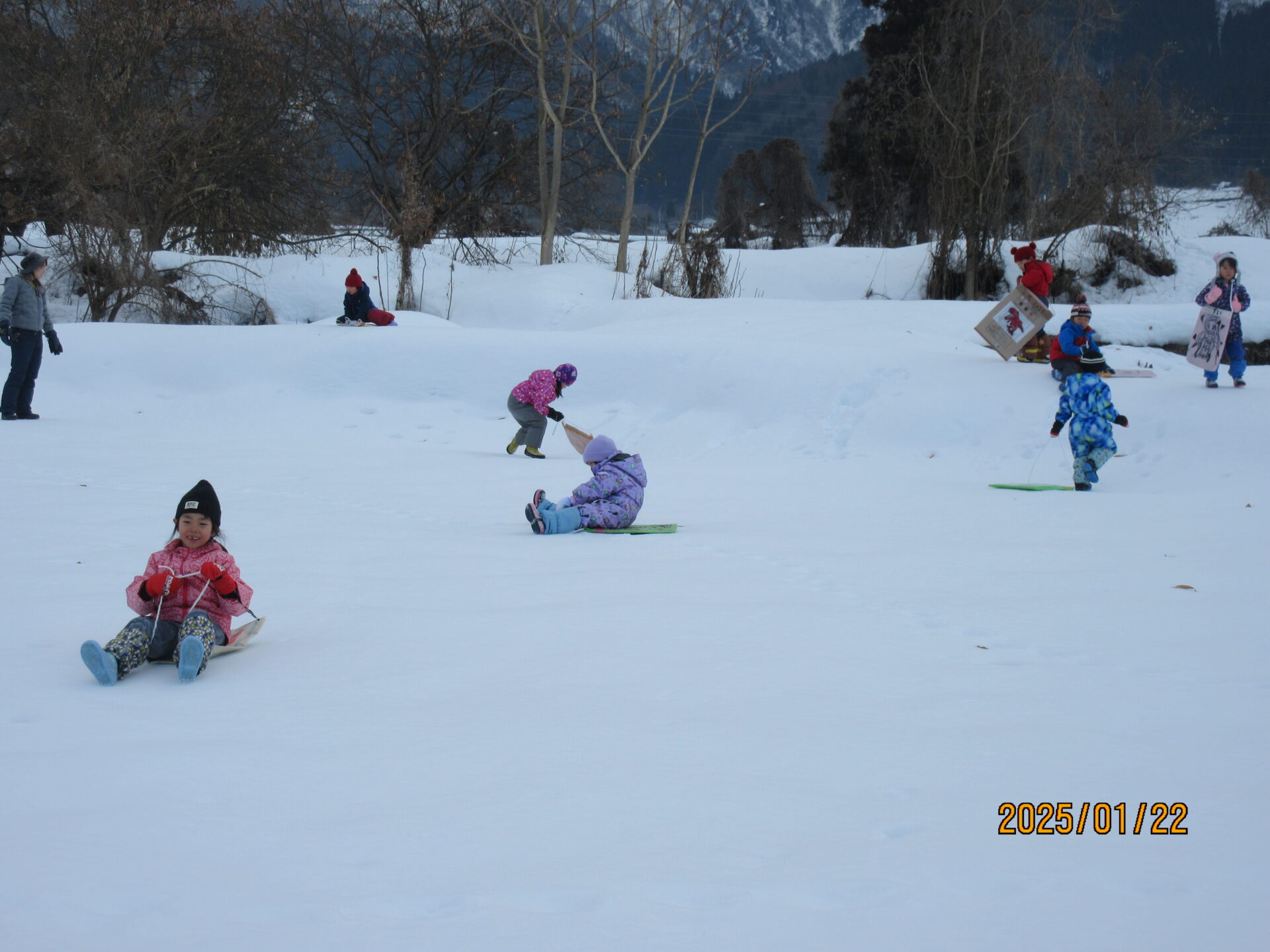 ・身近な自然の中での雪遊びの充実と冬の地域の伝統行事参加。