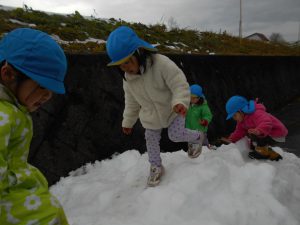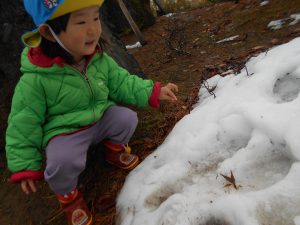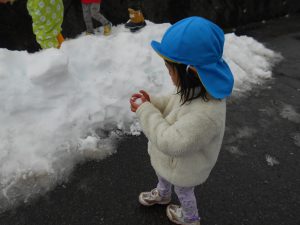 予想や発見、気付きを遊びに取り入れて、思い思いに雪や氷と親しんだ月組さんです。