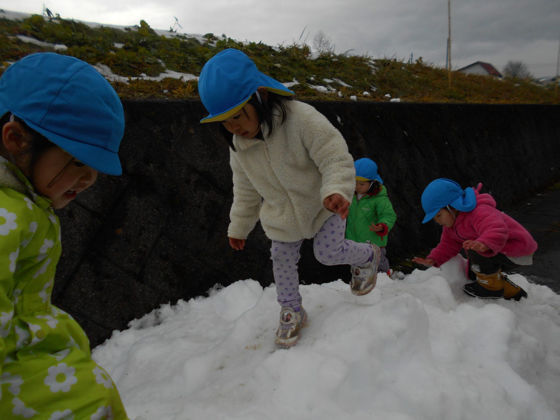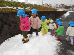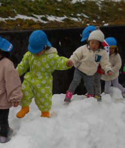 12月、昨年度より少し早めに、とがり保育園に雪が積もりました。