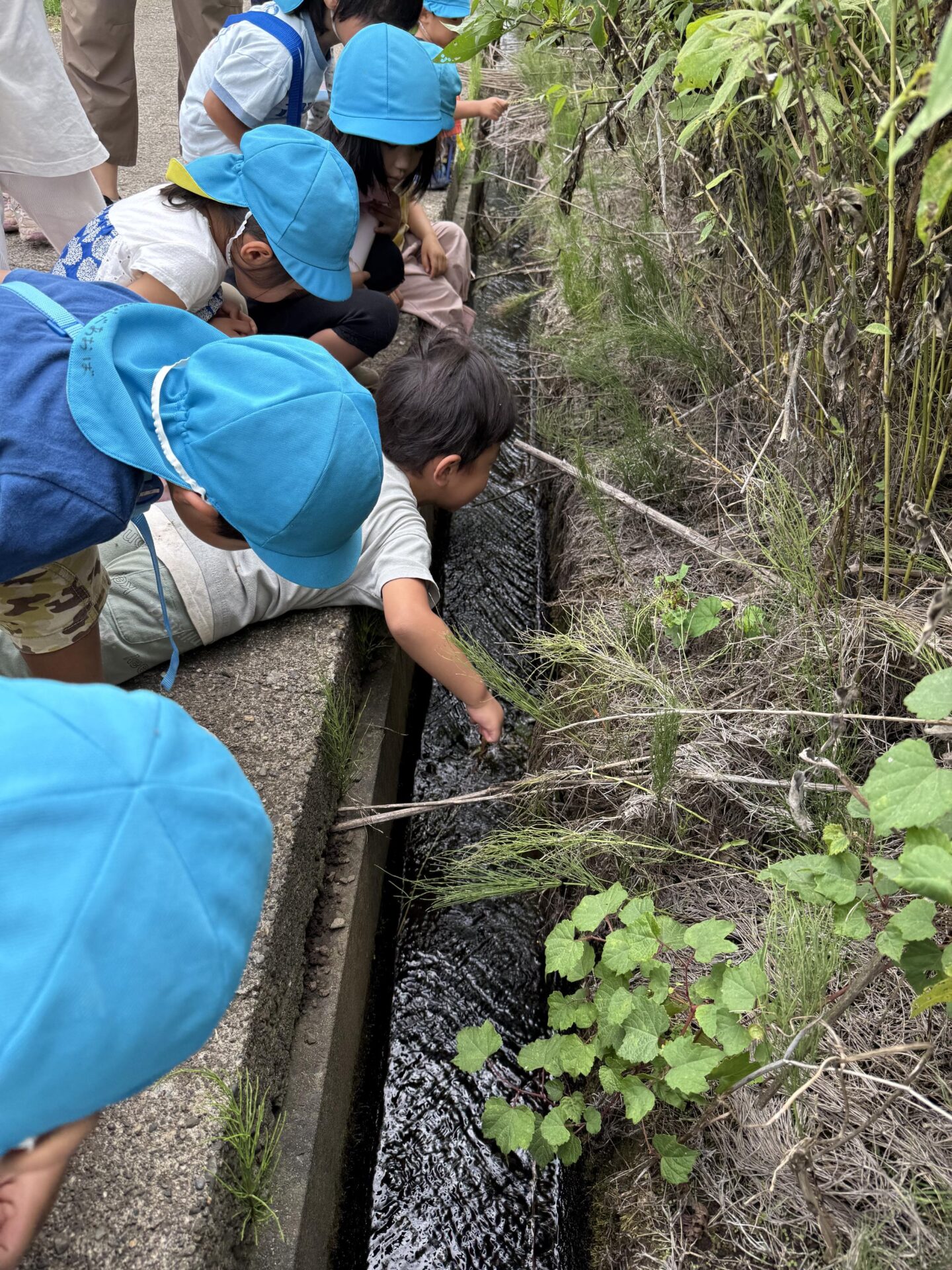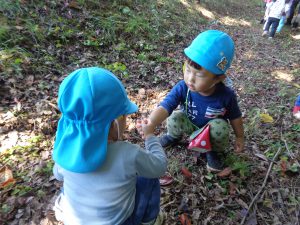 今回は年上児が見つけていたサワガニを自分たちも見つけたい!という憧れの気持ちの芽生えや、生き物との関わりから友だちと一緒に試行錯誤して工夫して遊ぶ楽しさを感じられたように思います。