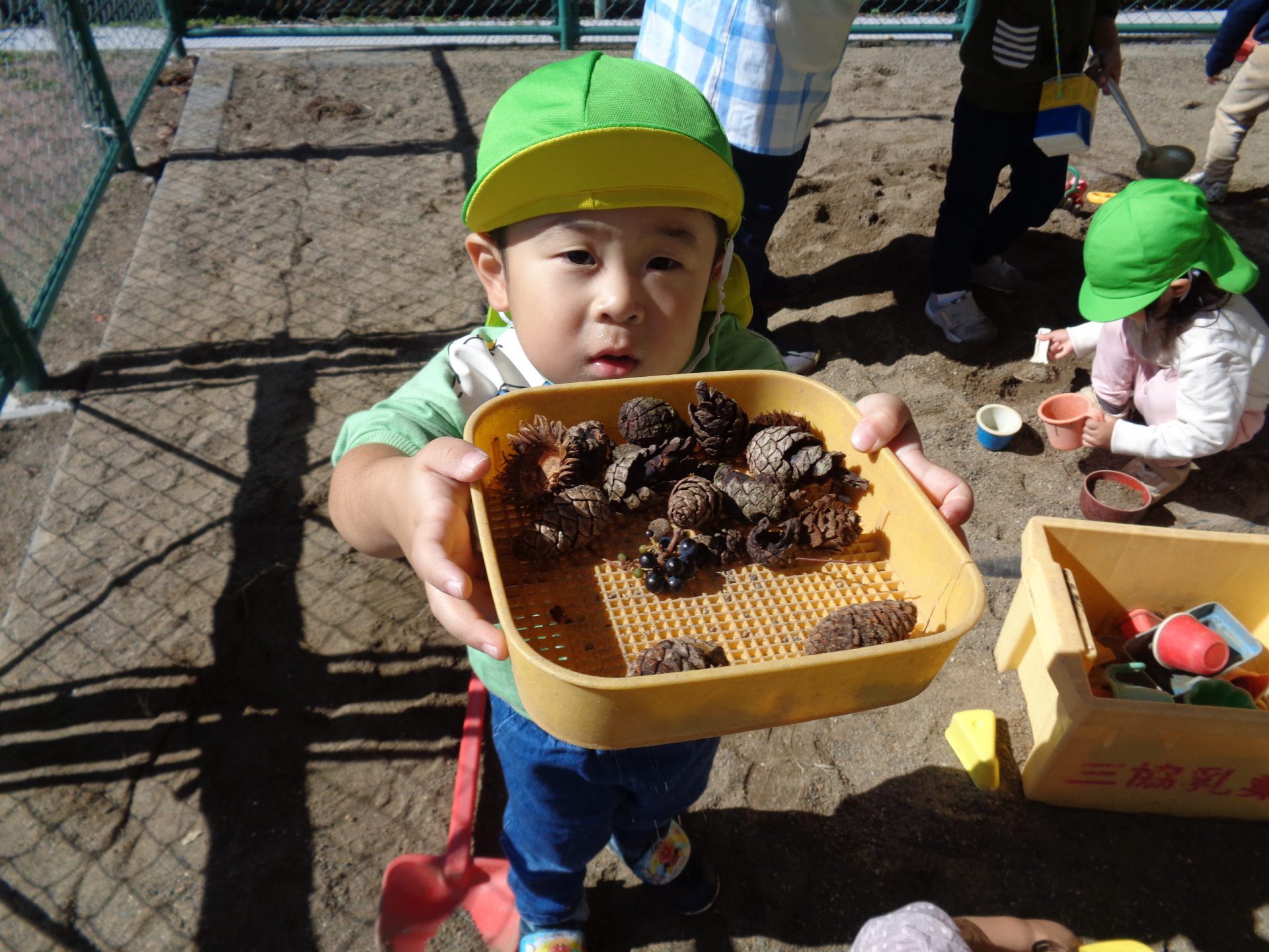 そのうちにかにのはさみが怖いけれど、手でつかまえてみる!と果敢に挑戦する子が現れました。