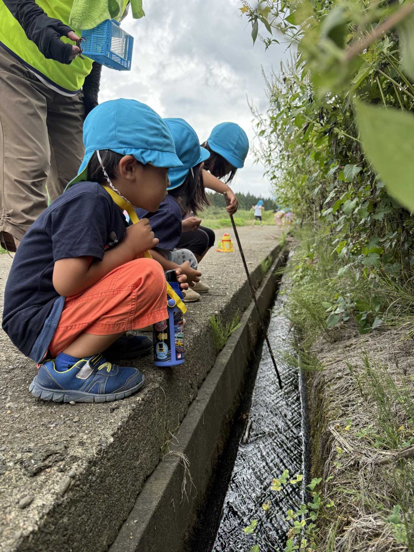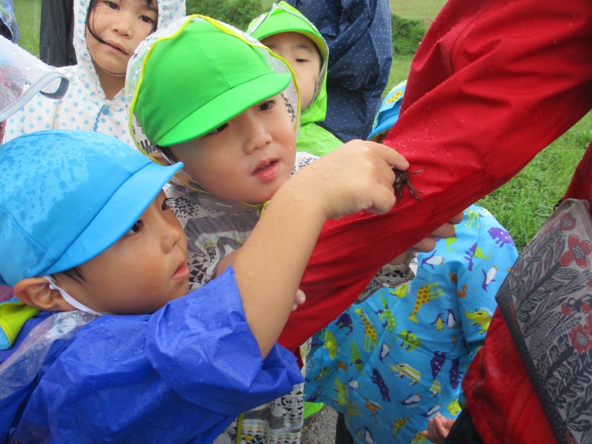 ある雨の日に異年齢合同で散歩へ行った際に畑の用水路でサワガニを発見。