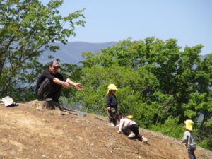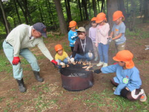 大きな古墳は子ども達をあたたかく受け止めてくれます。子ども達は駆け上がったり、走り下りたりが大好きです 。その古墳公園で、「たき火の会」」がR6年8月から始まりました!この地域の住む様々な年齢の方がたき火を囲んでゆるやかに 過ごすことを目的としています。