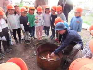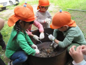 子どもの姿から保育士が共感しさらに遊びが展開していくよう自然に触れ子ども達自ら、人・自然・物と関わり面白がる、不思議がる、試したがる「がるがるっこ」の育成にも力を入れて取り組んでいます。意欲をもって行動できる子どもの姿を「がるがるっこ」と名付け、遊びや様々な自然体験を通して、幼児期までに育てたい10の姿が育まれ子ども一人ひとりが意欲を持ち自己肯定感、自信をつけ生涯にわたる「生きる力」の土台になることを願い保育を行っています。