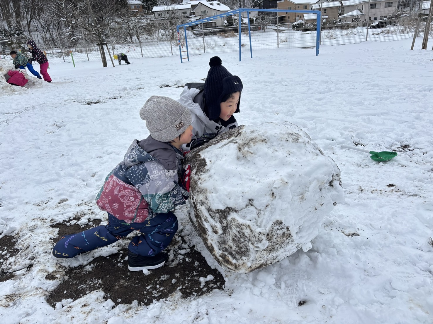 しっかりよくくっつく雪で、大きな雪の塊があっという間に作れました。