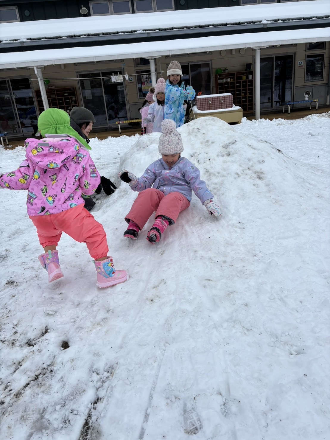 前日から「明日は遊べるね」と楽しみにして、防寒着を準備して遊び始めました。