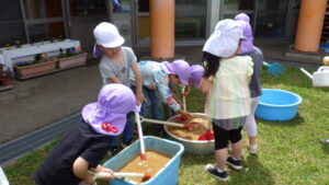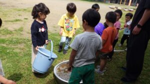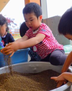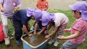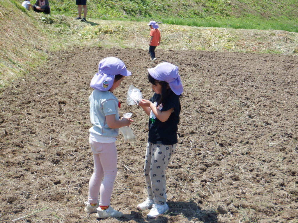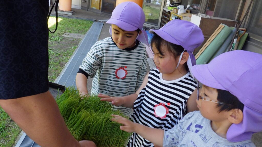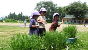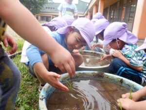 苦手な食べ物が多い年中さんの子ども達も、お米はみんな大好きなので、みんなで育てて収穫し、食べてみることができればと思っています。