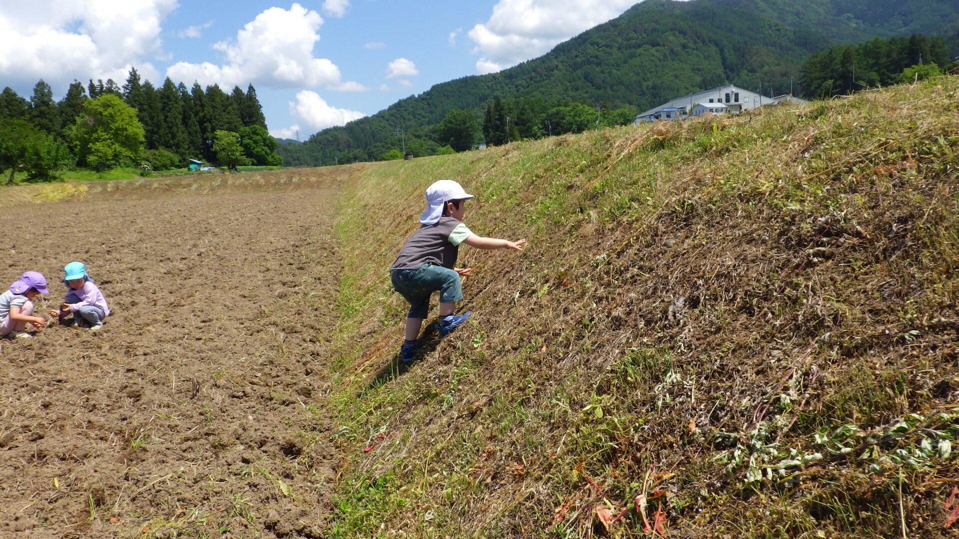 土手登りに挑戦する子もいます