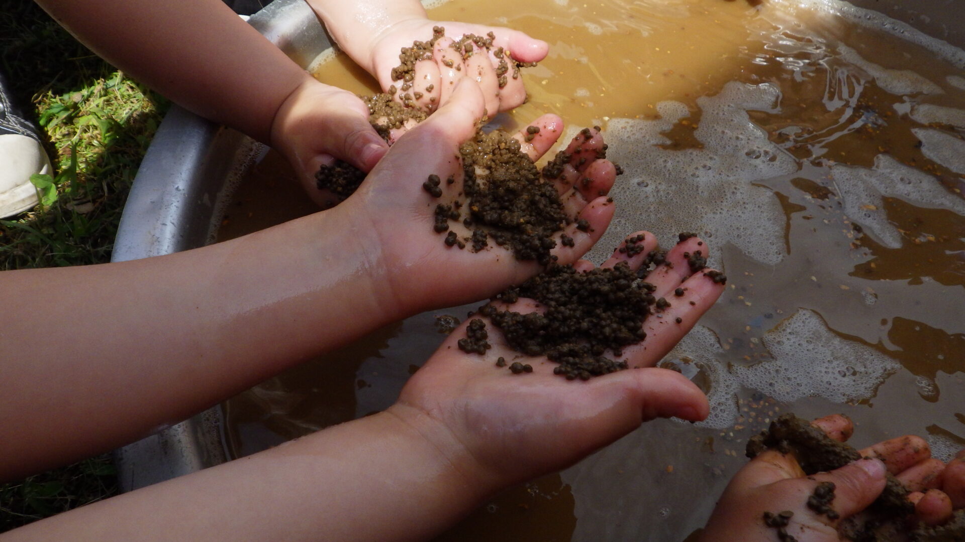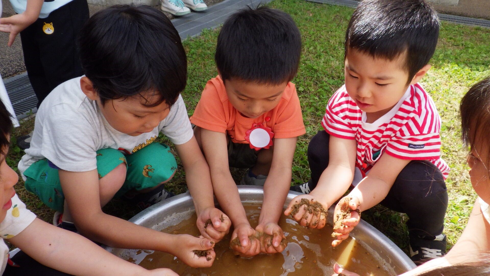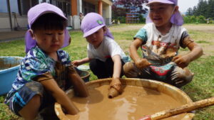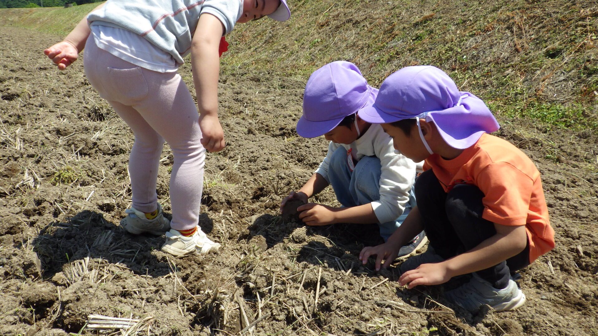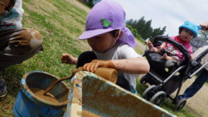 ということで、子ども達と話をすると「土をつぶせばいいんだよ!」と土をすくい上げ、