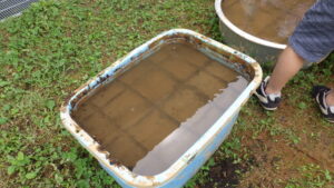 つぶつぶの土を用意しましたが、田んぼにはドロドロの土が良いみたい!