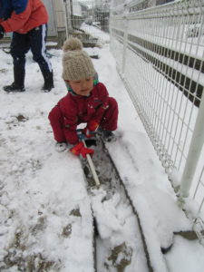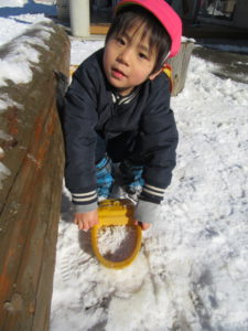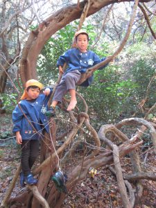 体の体幹をしっかりさせることが生活を支える力となると考え、まずは外遊びを多く取り入れることを目標としている。