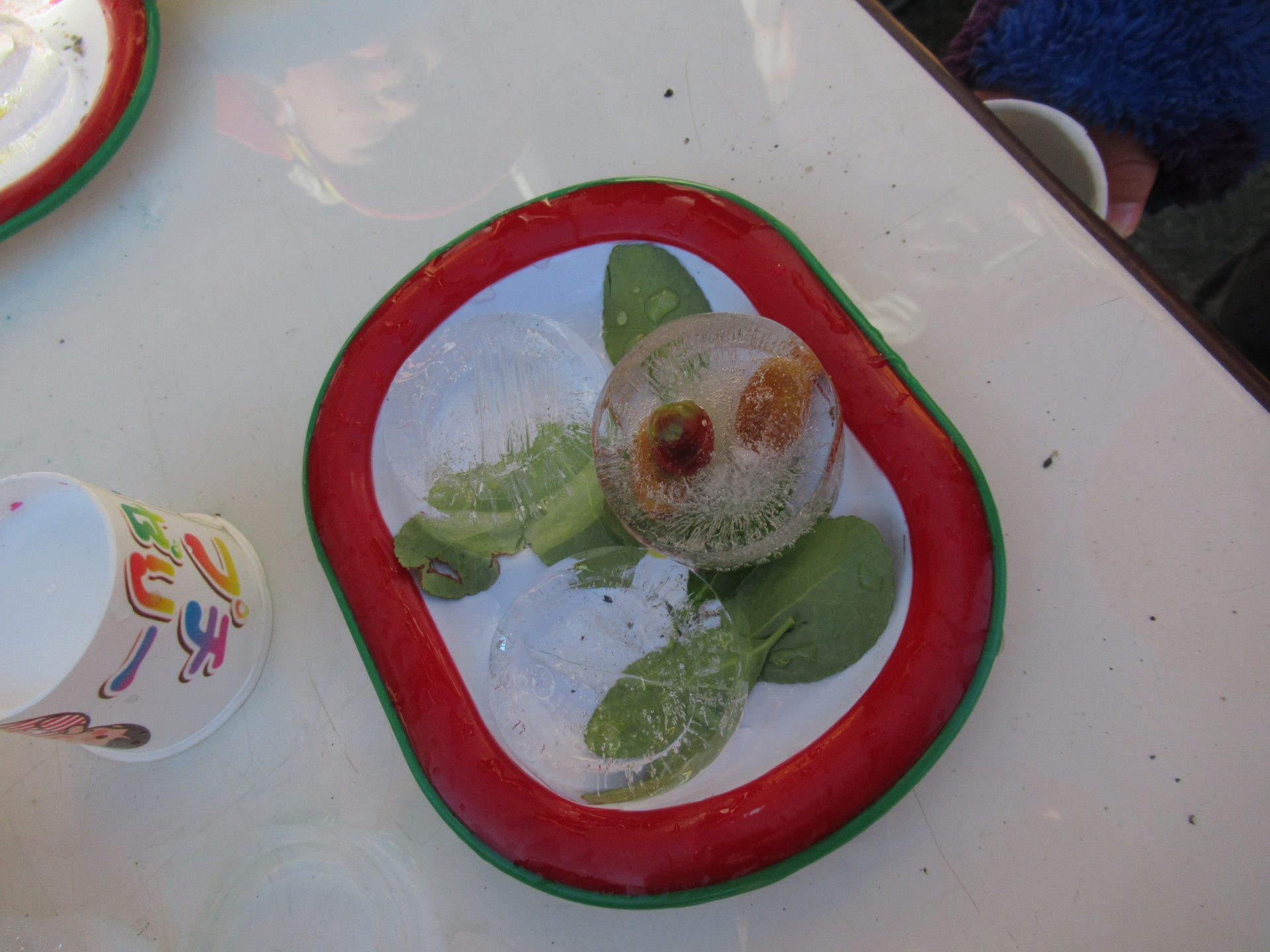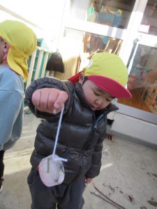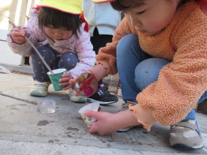 水たまりに指を入れて「冷たいね」「指濡れた!」という子もいました。
