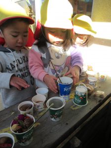 ・泥んこ遊びを取り入れ、汚れを気にせず全身泥んこになって遊ぶ中で、開放感や心地よさを味わい、遊びを通して想像力や感性、社会性を育てる保育をを行っている。