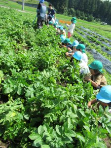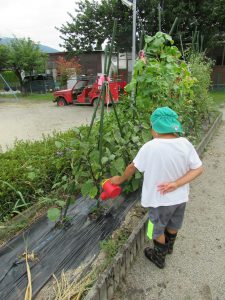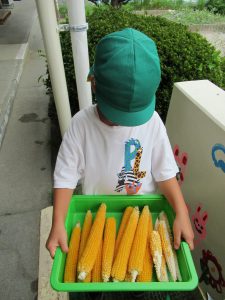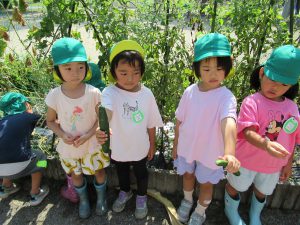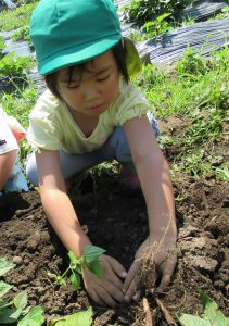 ・園内外に畑では、季節ごとに野菜を栽培している。土に親しみ、野菜の生長を観察しながら、草取りや水やりなど、畑のお世話を積極的に行い収穫を楽しみ、調理体験を行うなど食育活動に取り組んでている。