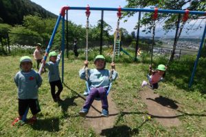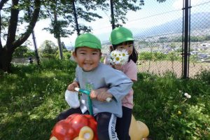 ブランコにスベリ台、こんな素敵な乗り物まであるんですよ。