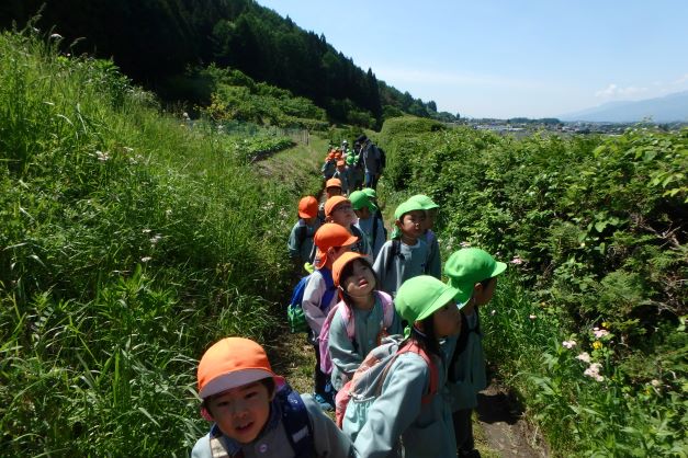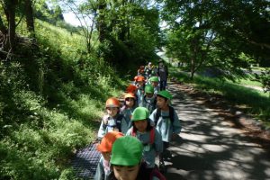 土手にはマーガレットが沢山咲いていました。花束にして「キレイでカワイイね!」と喜んでいました。花の蜜を吸うハナムグリやチョウチョを見つけて観察したりたくさん捕まえている子もいました。