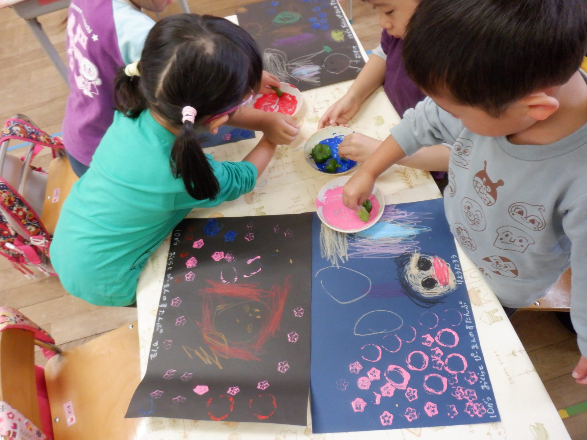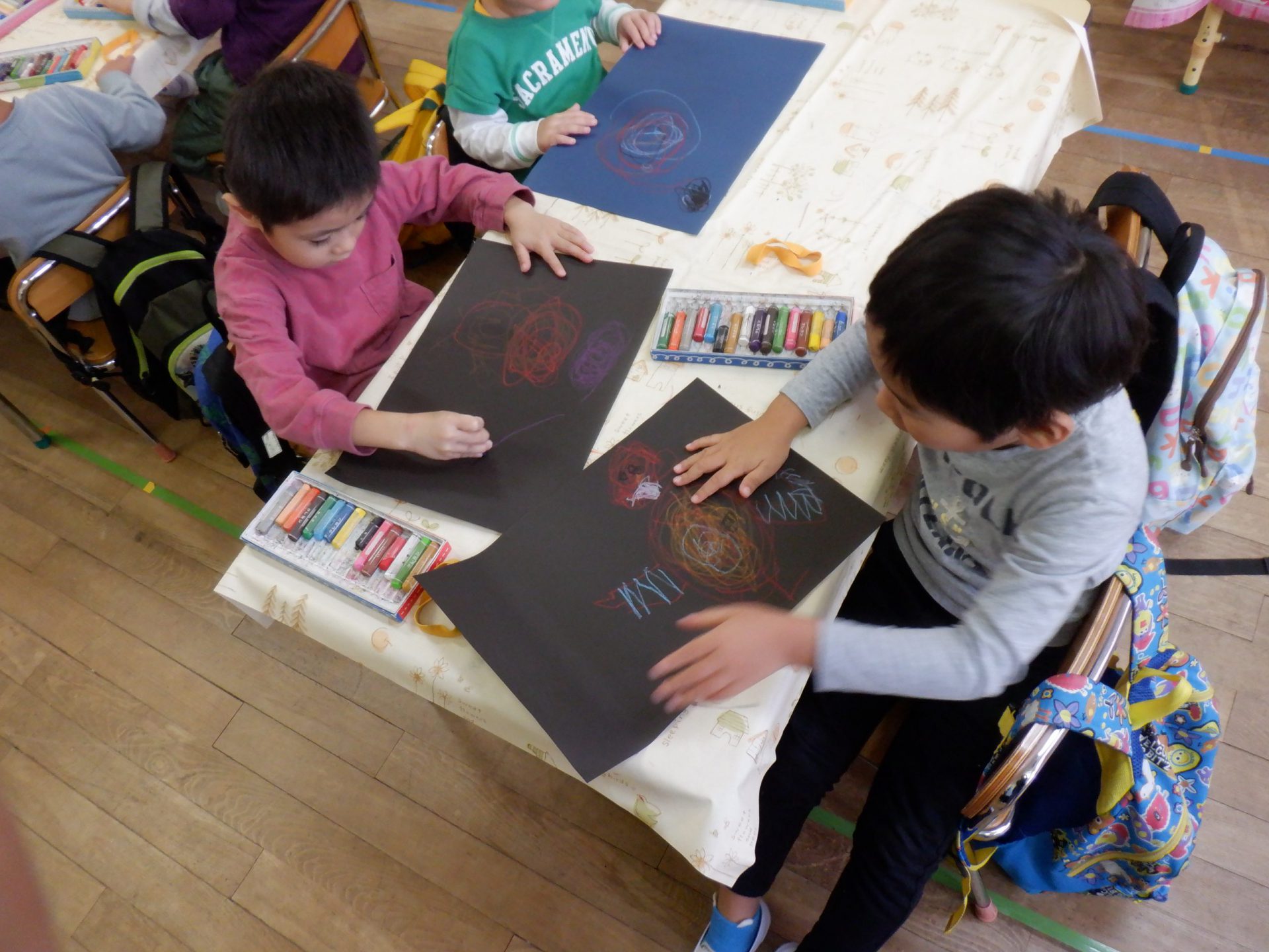 最後に好みの枝を見つけて毛糸を巻いてマスコット作りをしました。「できたね」「かわいいね」「教えてあげるよ」等とみんな大喜び。