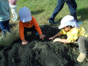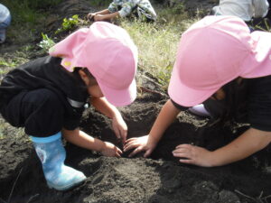 「そーっと掘るんだよ」「重い~」「ここにもあるよ」子ども達の声が響いていました。