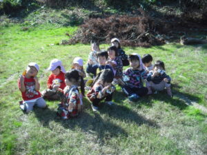 保育園の横の原っぱで出来立ての焼き芋を食べました。