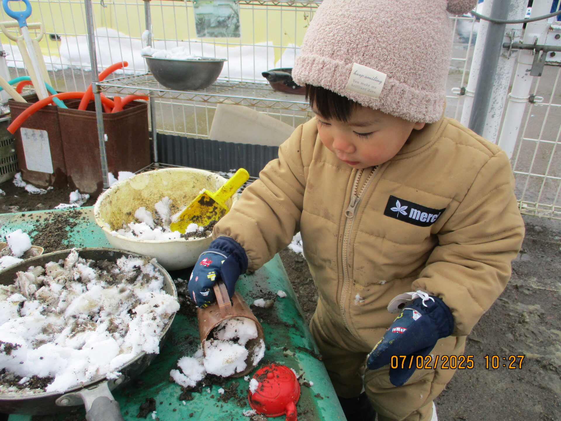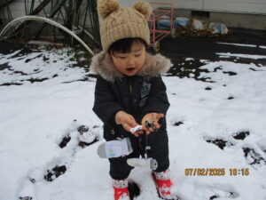 春は花や虫、夏は水遊び、冬は雪や氷など、季節ごとにそれぞれ魅力があり様々な楽しみ方があります。戸外に出たり散歩に出掛け、実際に足を止めて触ったり、匂いを嗅いだり観察してみたり、自然と触れ合う機会を沢山作ってきたいです。