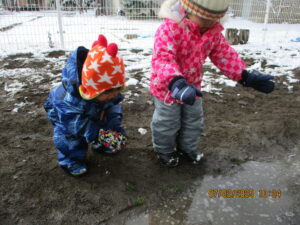 11月は気候が良く散歩に沢山でかけることができました。赤く色づいた木の葉、様々な形のどんぐりや松ぼっくり等色々な秋を見つけ、触って、拾い、集めることで秋の自然に親しむことができました。また、二歳児は自分で拾ってきた木の実や落ち葉等の秋の自然物を遊びに取り入れることでさらに遊びが広がりました。