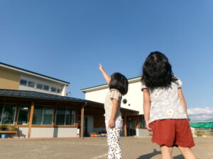 ・2023年4月より新しい園舎での保育が始まっています。県内産の木をふんだんに使い、。自然光を取り入れた建物です。