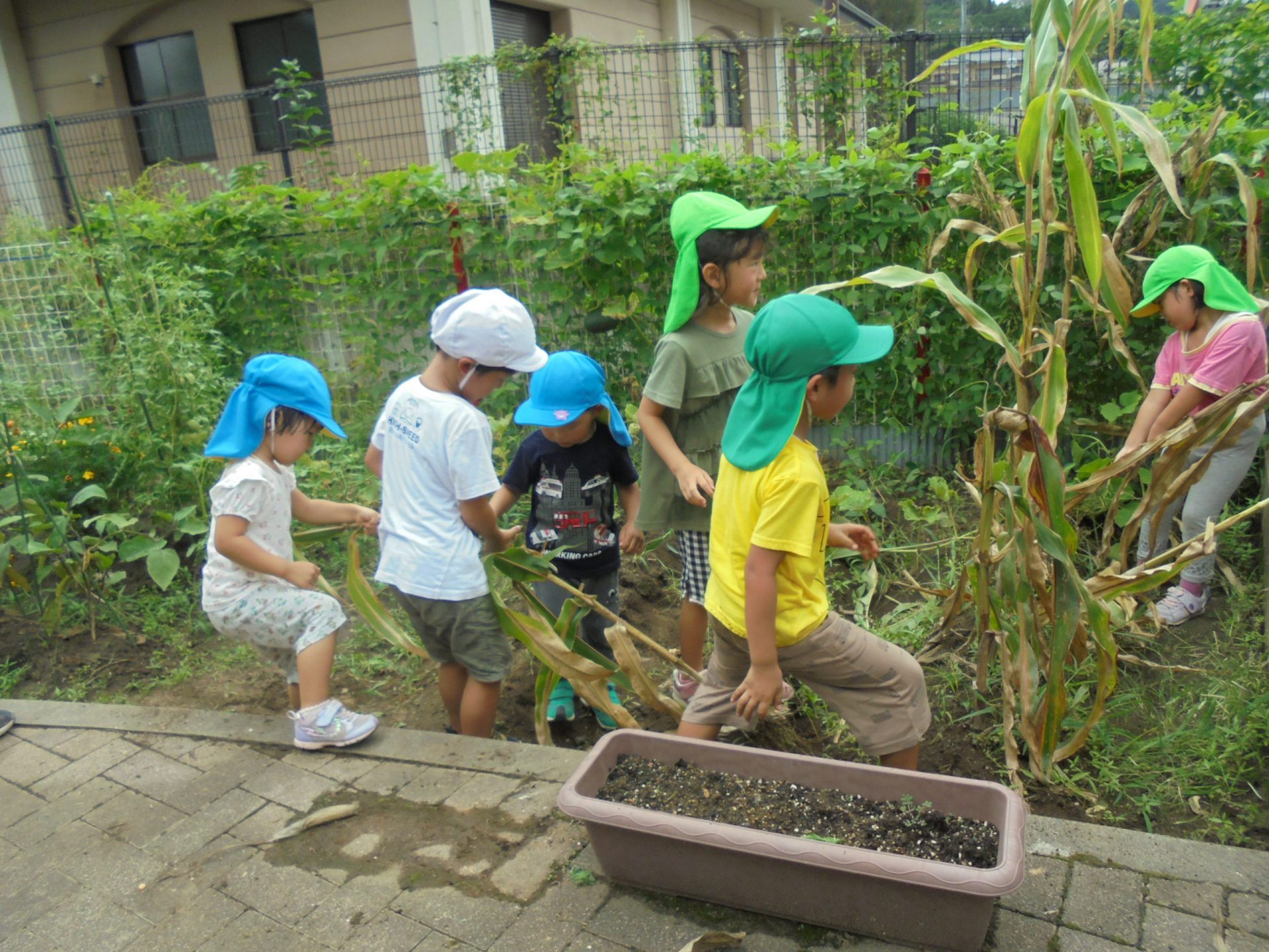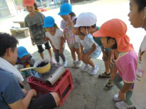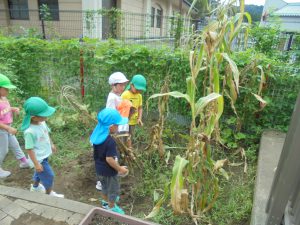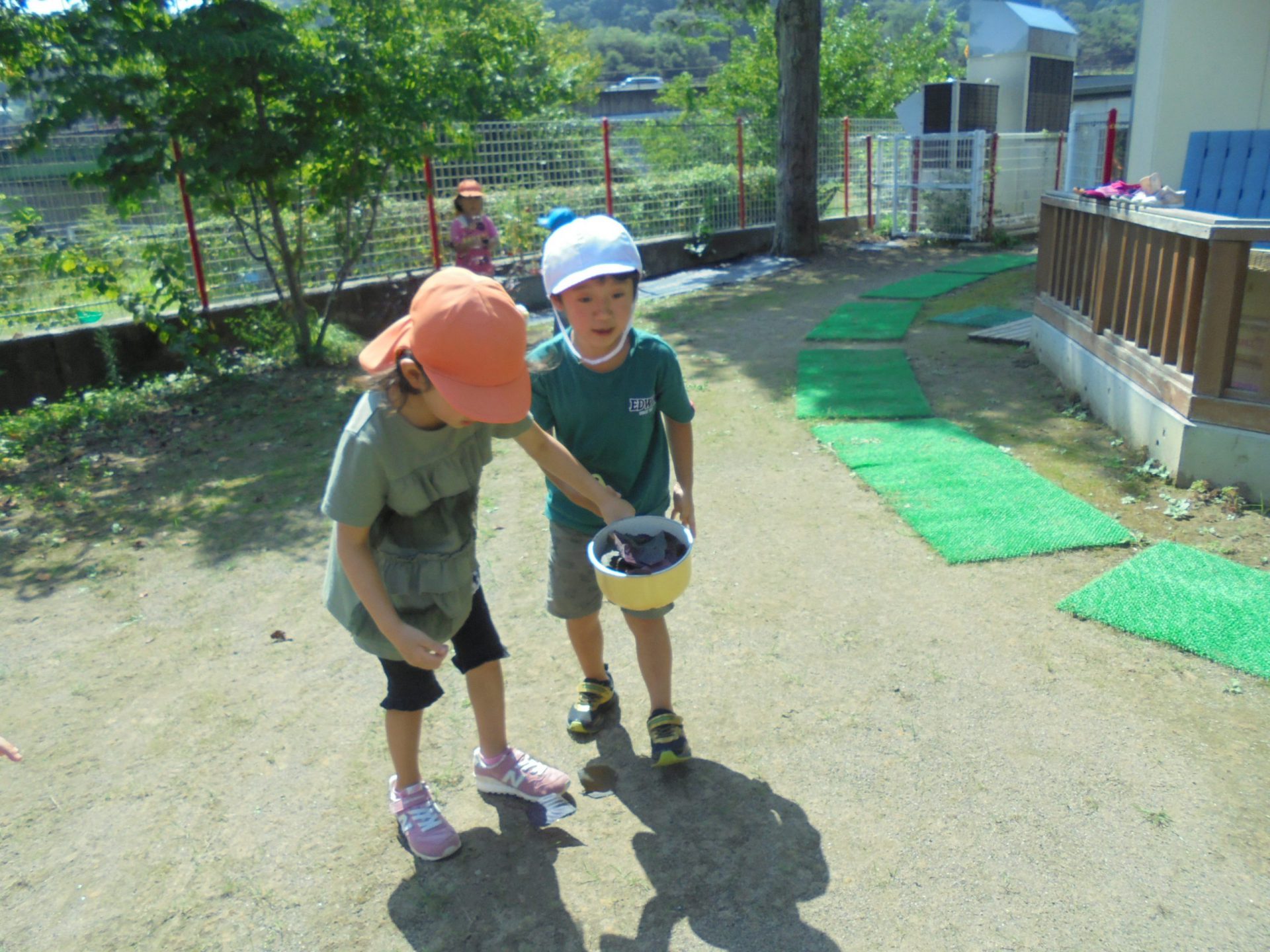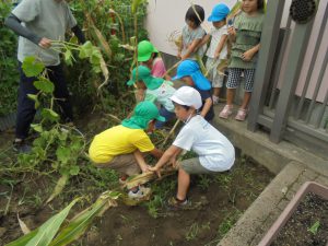 散歩や園庭内で最近はカマキリの発見が多く、子ども達にとって身近な生き物だったので貴重な場面を見ることができてよかったなと感じました。
