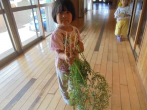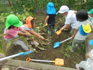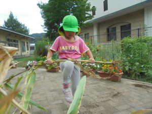・中山間地の小規模園ならではの特徴を生かし、異年齢で関わりながら自然と遊びます。