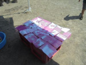 『カマキリの卵、産んでる時は水色なんだね!!』