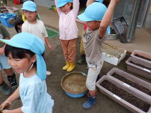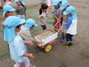 今日はりす組みんなで農道にお散歩に出かけました。