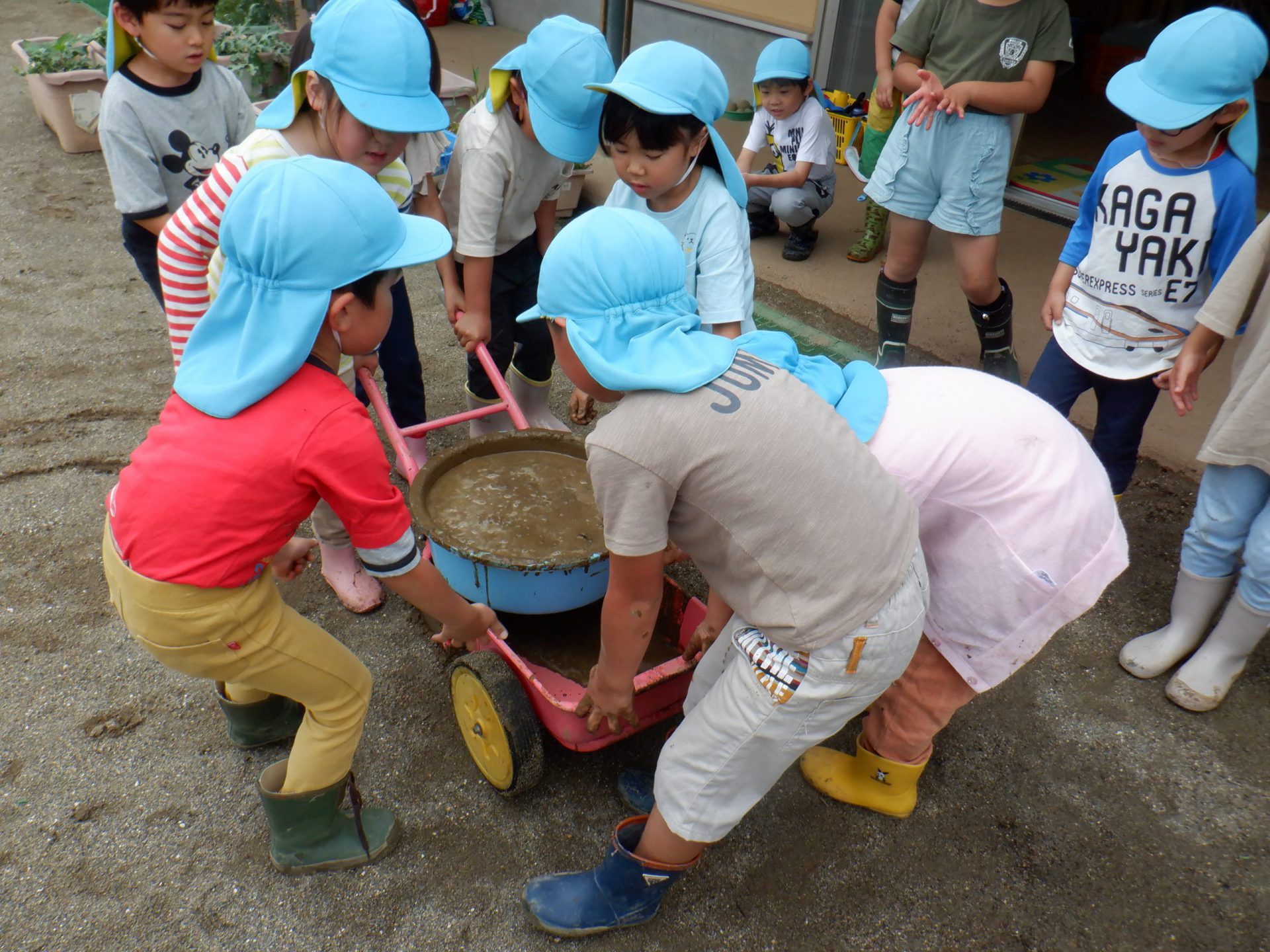天候に関係なく毎日園外に出かけ、周囲の自然や人に関わっています。