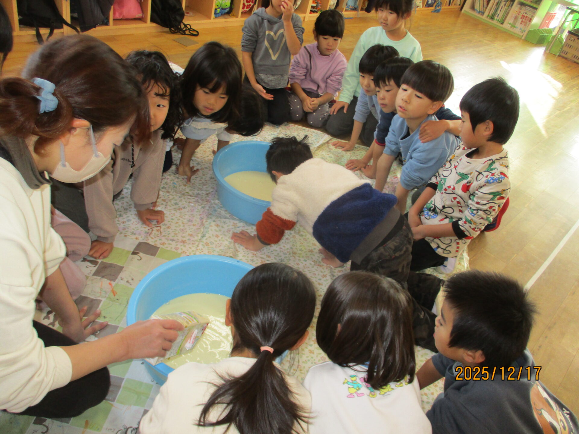 模様が出来たことに驚き、出来た模様を「○○みたい!」と魚や花などに見立てていました。