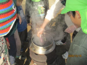 焼き芋大会での焚火の匂いや、和食の日で出汁を煮込んだことを思い出していました。