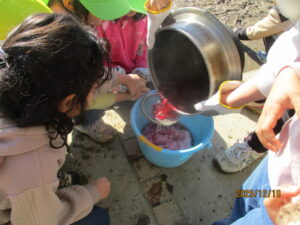 今まで作ったことのある色水は時間が経つと色が変化してしまうことに気づき、それを防ぐ為に行う準備ということが分かったようです。