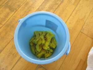 春から秋にかけて子ども達自ら水やりをして大切に育てたり、色水を作ったりしていたマリーゴールドと朝顔。それらを冷凍保存しておき、今回染め布をすることにしました。色水遊びが大好きだったので、布に染めて残しておけることにとても喜び、期待しながら準備開始です!