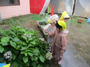 ・天気の良い日はいつも朝園庭に出て、砂遊びや虫探し、泥だんごづくりなど、身近な自然物で遊んでいます。